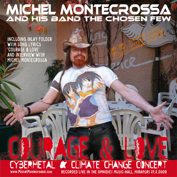 The ‘Courage & Love’ Cybermetal & Climate Change Concert, released by Mira Sound Germany as double Audio-CD and DVD is Michel Montecrossa’s fourth concert of the Courage & Love Climate Change Concert Tour 2009 presenting 27 songs, including the title song ‘Courage & Love’, the passionate ‘Life Without Walls’ and the wild ‘Adults Are Idiots’.