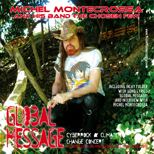 The ‘Global Message’ Cyberrock & Climate Change Concert, released by Mira Sound Germany as double Audio-CD and DVD is Michel Montecrossa’s eighth message concert of the Courage & Love Climate Change Concert Tour 2009 presenting 29 songs, including the acoustic title song ‘Global Message’ and acoustic theme songs like ‘Hey, Hey… This Man Is O.K.’, ‘All The While’ and ‘United Nations Of The Earth’ as well as cyberrock theme songs like ‘Survivor In The City’, ‘Powerhouse Of Consciousness’, the touching ‘Planet Kid’ and the heartfelt ‘Child Of Our Days’ and ‘World Love Song’.