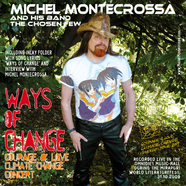 The ‘Ways Of Change’ Courage & Love Climate Change Concert, released by Mira Sound Germany as double Audio-CD and DVD is Michel Montecrossa’s twenty-sixth concert of the Courage & Love Climate Change Concert Tour 2009 presenting 25 climate change songs, including the title song ‘Ways Of Change’ and great songs like ‘Honey For Honey’, ‘Here I Am Again’, ‘God Is A Girl’ and ‘Feelin’ Good’.