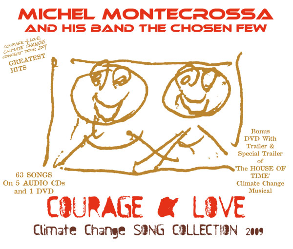 ‘Courage & Love Climate Change Song Collection 2009′ is the breathtakin’ 6 CD-Box presenting on 5 Audio-CDs and 1 DVD all 63 greatest hits from Michel Montecrossa’s landmark Courage & Love Climate Change Tour 2009, published in the ‘COURAGE & LOVE SONGLYRICS BOOK‘.