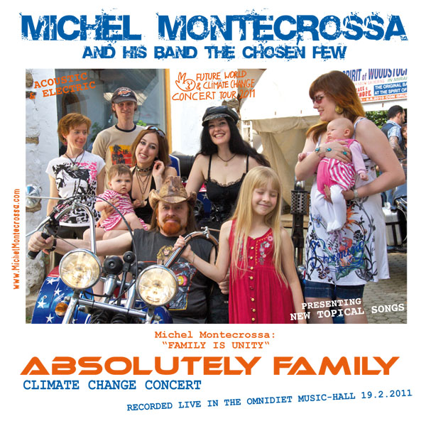 The ‘Absolutely Family’ Climate Change Concert with new topical songs, released by Mira Sound Germany as Double Audio-CD or DVD is Michel Montecrossa’s third concert of the Future World & Climate Change Concert Tour 2011.