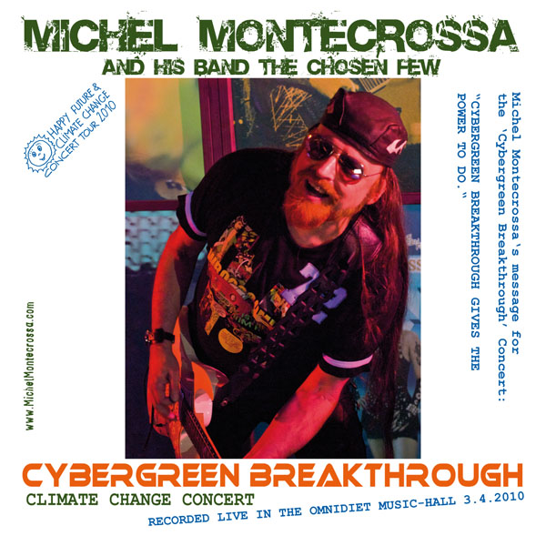 The ‘Cybergreen Breakthrough’ Climate Change Concert, released by Mira Sound Germany as double Audio-CD and DVD is Michel Montecrossa’s fourth futurist concert of the Happy Future & Climate Change Concert Tour 2010. Performed in the Omnidiet Music-Hall the concert includes 23 rock and dance songs including the title song ‘Cybergreen Breakthrough’, the rebellious ‘Liars & Truth-Tellers #2’ and the touching ‘Cyberrocker Ballad’.