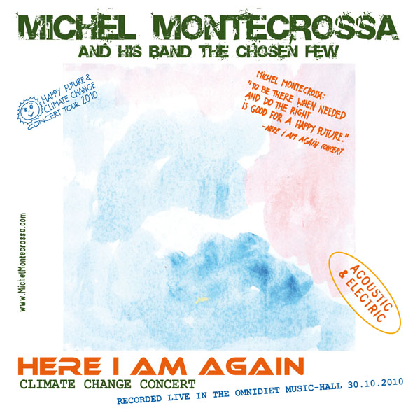 The ‘Here I Am Again’ Climate Change Concert, released by Mira Sound Germany as double Audio-CD is Michel Montecrossa’s 20th climate change concert of the Happy Future and Climate Change Concert Tour 2010. Performed in the Omnidiet Music-Hall during the Mirapuri Literature Fest the concert presents 25 poetic acoustic ballads, cyberrock and dance-electronica songs including the title song ‘I’m On My New Way’ an alternate version of ‘Here I Am Again’, the topical ‘Givin’ Is The Power Of Happiness’, the cool ‘Open Your Eyes Blues’ and ‘Hunt For Truth’, the band-versions of ‘Damn It!’ and ‘Arnika’ and the outstanding electro-acoustic version of ‘Cyberrocker Ballad’.