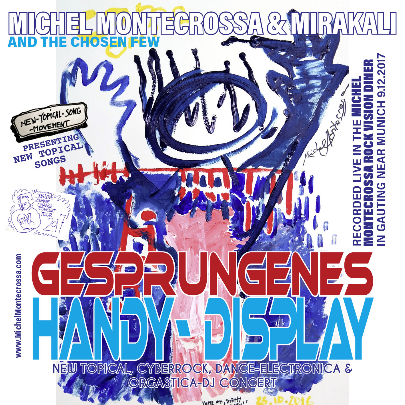 Michel Montecrossa says about the New-Topical, Cyberrock, Dance-Electronica, Cyberpoetry & Orgastica-DJ Live-Concert Album ’Gesprungenes Handy-Display’: