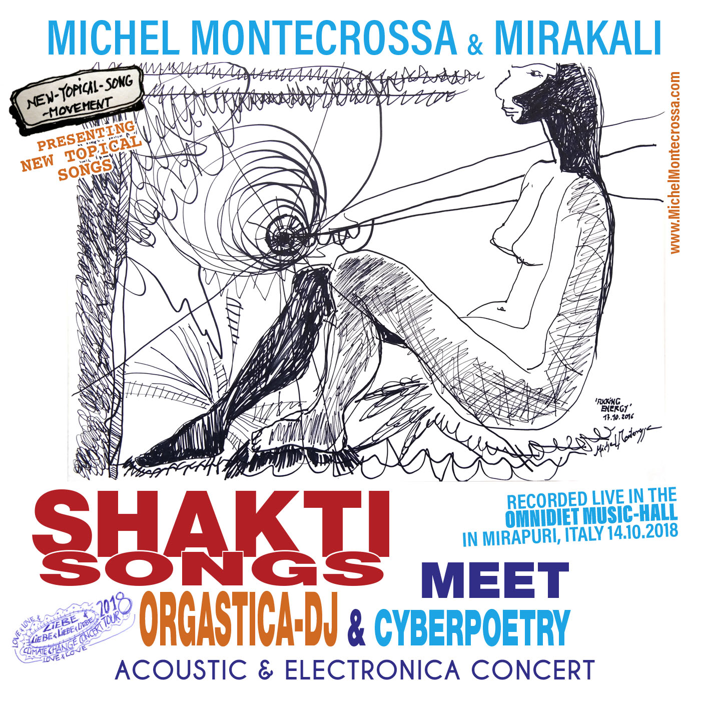 ‘Shakti Songs meet Orgastica-DJ & Cyberpoetry’ is the title of the grand Acoustic & Electronica Concert by Michel Montecrossa and Mirakali in the Omnidiet Music-Hall in Mirapuri on 14th October 2018, featuring Michel Montecrossa’s new intensity of acoustic Stream-of-Consciousness Songs and Mirakali’s exciting Orgastica-DJ Instrumentals that go along with the recitations of her expressive Zen-Style Cyberpoems. The concert is released by Mira Sound Germany on Audio-CD, DVD and as Download and presents 36 great songs by Michel Montecrossa and Mirakali including: ‘Shakti Dream’, ‘Shakti Ballad’, ‘My Sweetest Woman’, ‘Truth Is Like A Melody’, ‘Sunworld Dream’, ‘Love’, ‘Someone Asks You For Help’, ‘First Hope’, ‘Knowing The Answer’, ‘Love Hotel’, ‘Wann Und Wo’, ‘Tender Mystery’, ‘Sweet Blessings’, ‘Wer Bist Du?’, ‘Human’, ‘Music’ and many more.