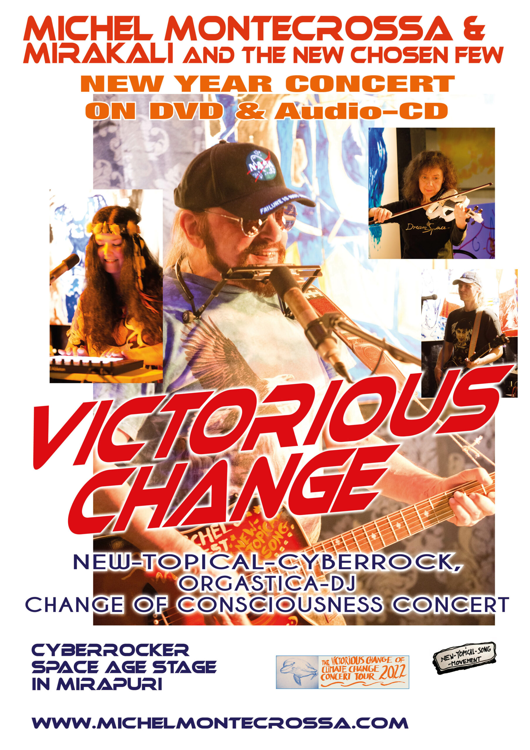 ‘VICTORIOUS CHANGE’ – the great Change of Consciousness Concert for New Year 2022 performed by Michel Montecrossa and The New Chosen Few, is released by Mira Sound Germany on Double Audio-CD, Double DVD, Streaming and as Download.