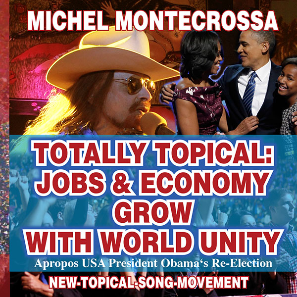 ‘Totally Topical: Jobs & Economy Grow With World Unity‘, released by Mira Sound Germany on Audio Single and DVD, is Michel Montecrossa’s New-Topical-Song apropos USA President Obama’s Re-Election and a new outlook on solving the problem of creating jobs and stimulation of economy.