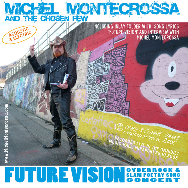 ‘Future Vision’ is Michel Montecrossa’s 31st Peace & Climate Change concert which he and his band performed during the Mirapuri World Literature Fest 2008 presenting new ways of looking at the question of changing environment. Released by Mira Sound Germany as Double Audio-CD and double DVD the production presents 34 great Michel Montecrossa songs including the title song ‘Future Vision’, the ‘Message From Barack Obama To Michel Montecrossa’, the invocatory ‘Mother Earth’ and great acoustic versions of ‘Ballad Of Lost Dreams’ and ‘Feel The Wild Wind’.