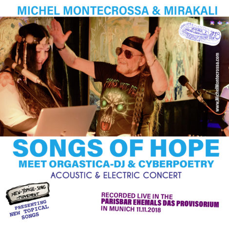 Michel Montecrossa and Mirakali and their ‘Songs of Hope meet Orgastica-DJ & Cyberpoetry’ Acoustic & Electronica Concert in the ‘Parisbar ehemals Das Provisorium’ on 11th November 2018 on Audio-CD, DVD and as Download