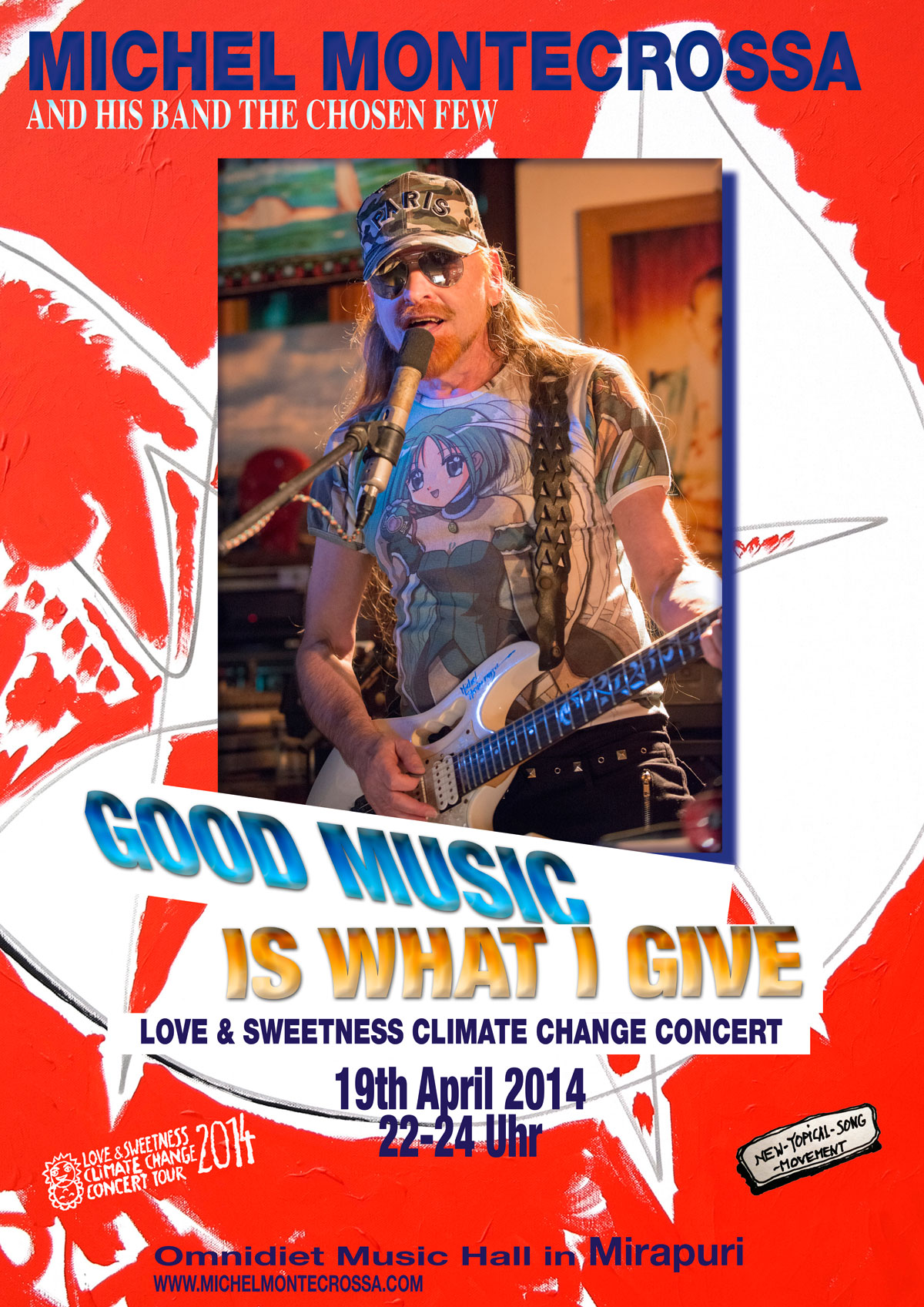 Michel Montecrossa together with Mirakali and Diana Antara play the ‘Good Music Is What I Give’ Concert on 19th April 2014 in the Omnidiet Music-Hall.