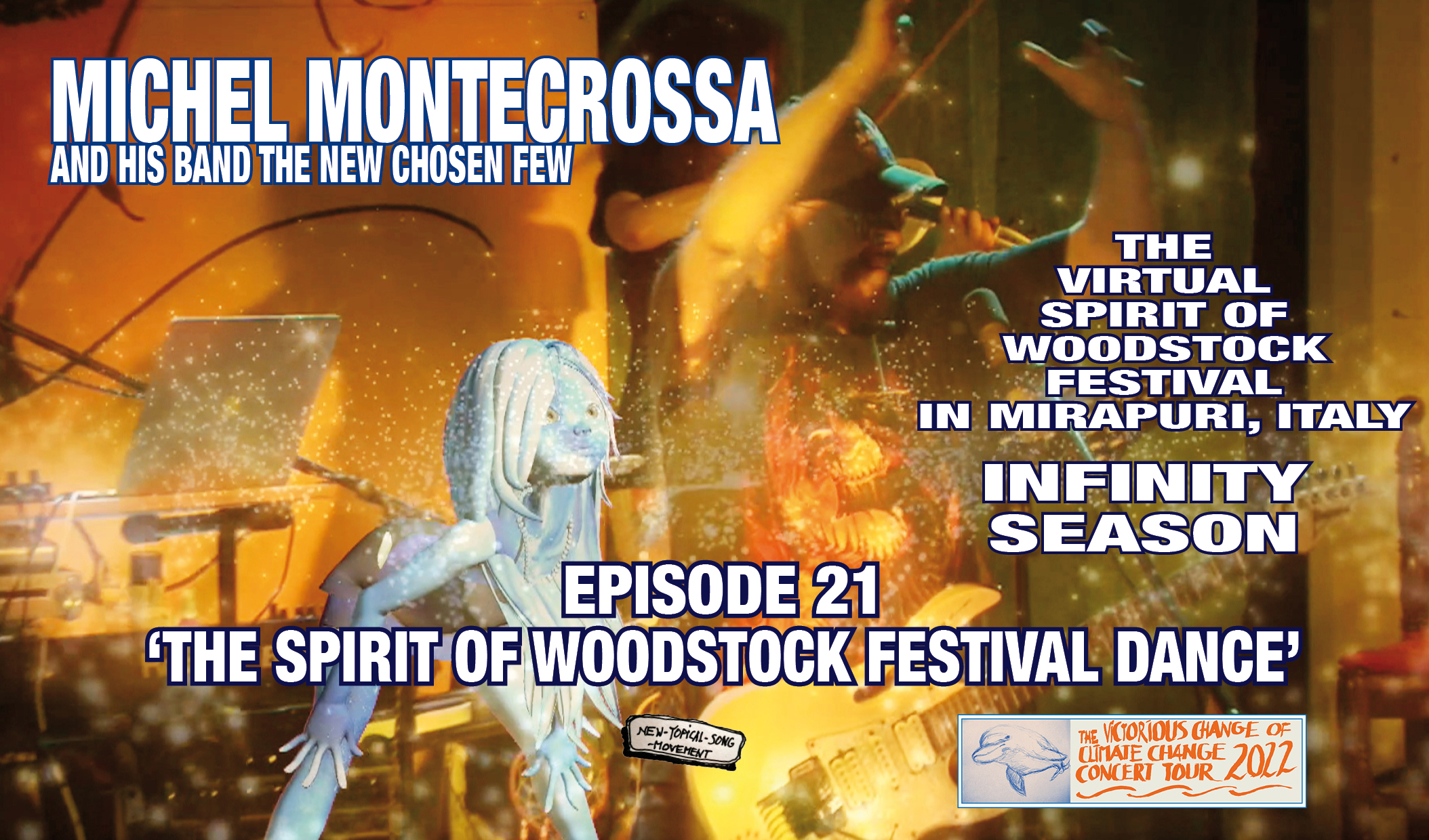 Episode 21 ‘The Spirit of Woodstock Festival Dance’ of the Virtual Spirit of Woodstock Festival in Mirapuri, Italy, Infinity Season, released by Mira Sound Germany on Audio-CD, DVD and as Download, presents Michel Montecrossa and his band The New Chosen Few with great songs from the The Spirit of Woodstock Festival Concert 2021: ‘The Spirit of Woodstock Festival Dance’, ‘After The Night: The Beautiful Garden Of Love, Peace And Happiness’, ‘Die Ewigkeit Ist Zu Kurz Im Mondlicht Nackt – Eternity Is Too Short In Moonlight Naked’, ‘Girly Hip Hip’ and ‘Paradise Emotion’.