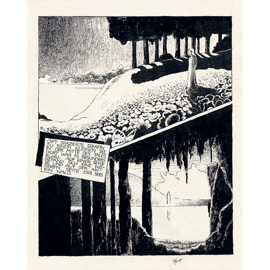 of 8 drawings and 1 introduction page as high resolution art prints on Hahnemühle Digital FineArt paper all hand-signed by the artist with an original painting as cover design by Michel Montecrossa for each boxed set,