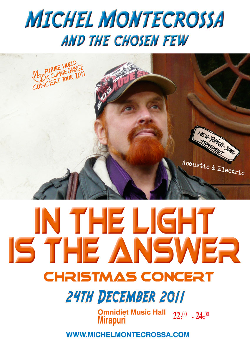 Michel Montecrossa says about the ‘In The Light Is The Answer’ Christmas concert: “‘In The Light Is The Answer’ is the title song of my Christmas concert 2011 that holds against the daily junk and rubbish of a heartless no-answer-world. Light is where love is. Yeah man! And love is the answer.”